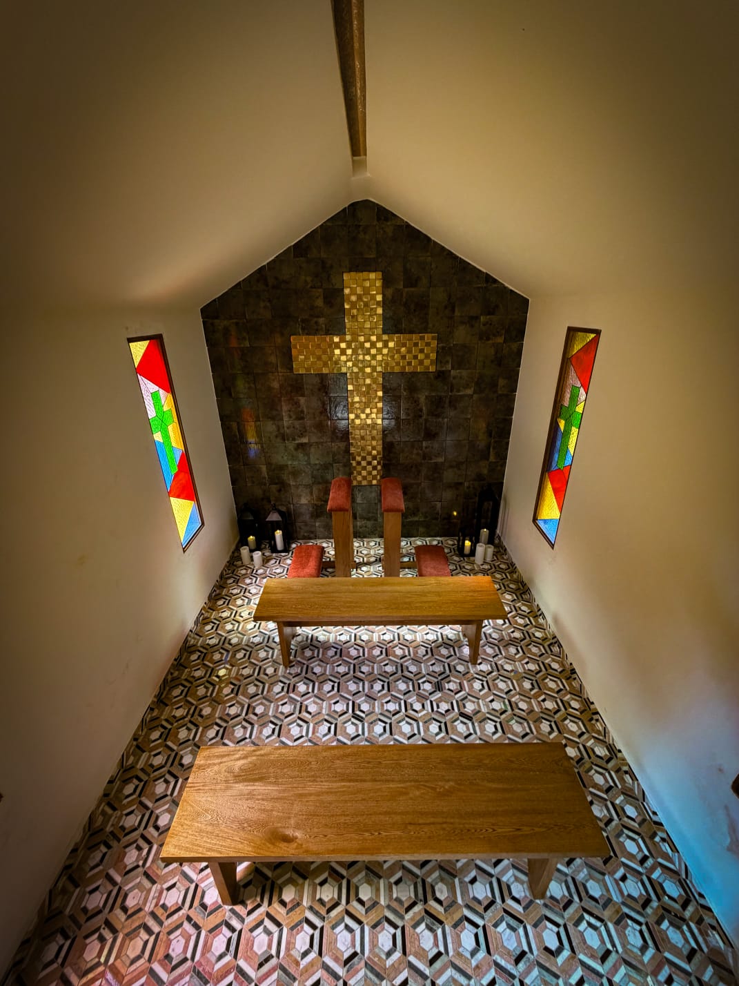 La Capilla de las Tres Cruces es un espacio íntimo y simbólico ubicado dentro de Casa Eve Club, rodeado de naturaleza y diseñado para momentos de profunda conexión.